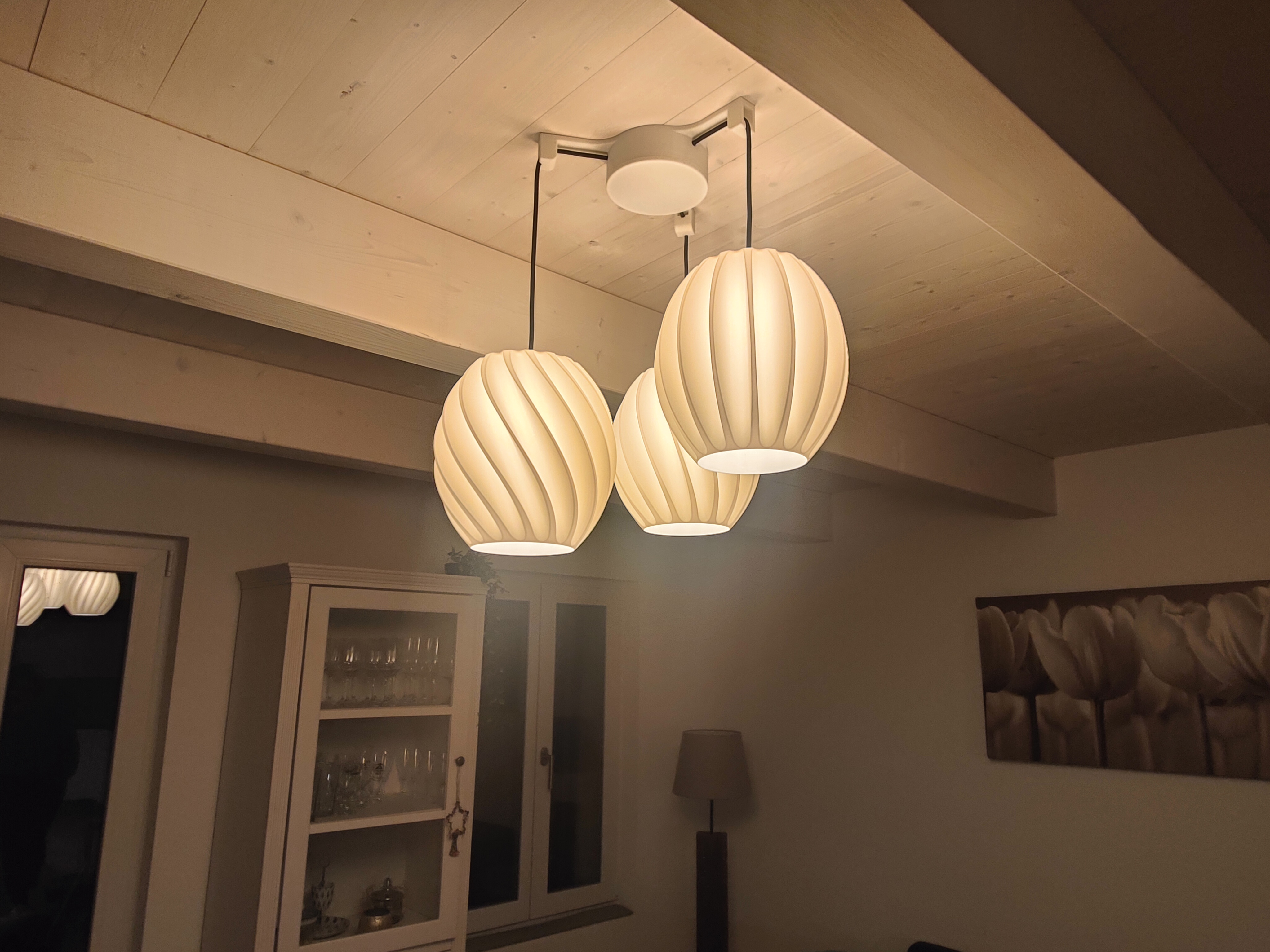 Individuelle Grössen & Ausführungen: Wir fertigen die Model P in verschiedenen Massen bis zu einer Höhe von 400 mm. Für besondere Akzente bieten wir spezialisierte, gedruckte Halterungen mit hochwertigen Textilkabeln an, mit denen sich eindrucksvolle Kompositionen aus drei oder mehr Leuchten realisieren lassen.