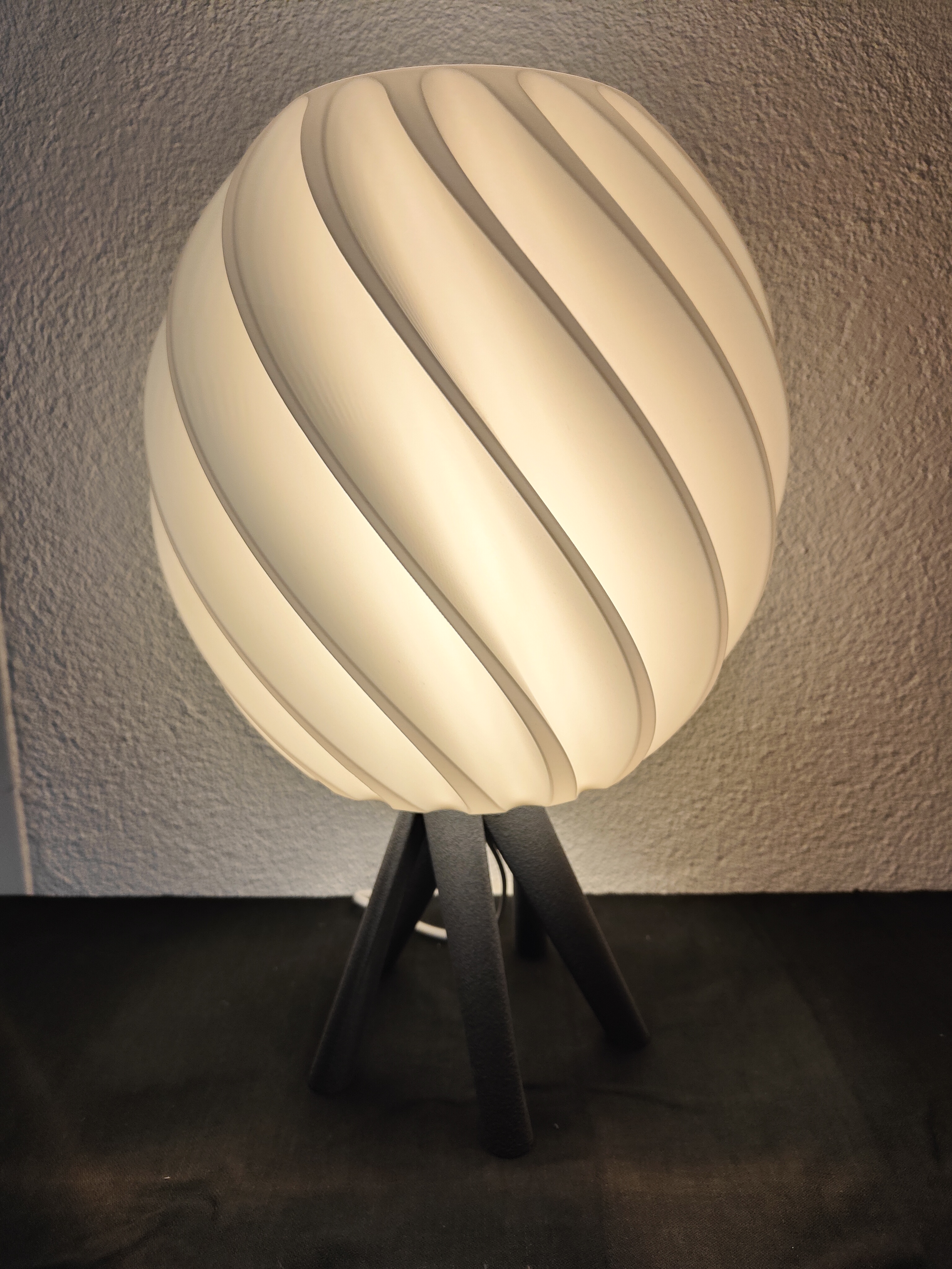 Technik mit Komfort: Beide Komponenten werden präzise in unserem Atelier 3D-gedruckt. Die integrierte E27-Fassung und das ca. 1,8m Meter lange Kabel mit Kippschalter garantieren eine einfache Handhabung.