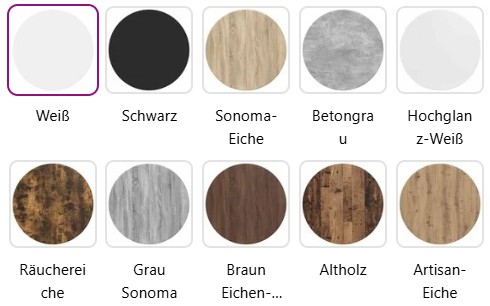 Hochglanz-Weiss, Weiss, Schwarz, Betongrau